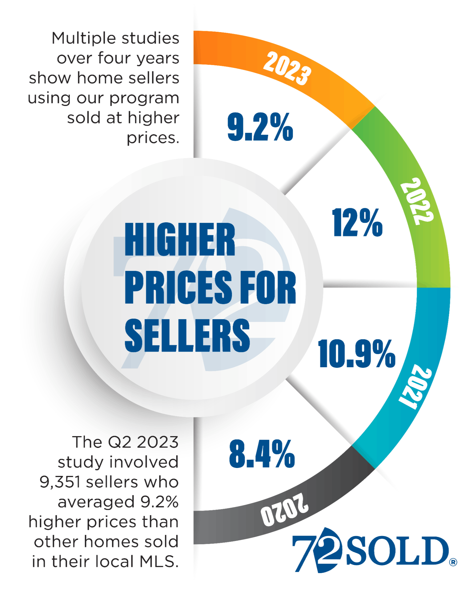 Seven independent studies over the past three years found that sellers who used our program sold at significantly higher prices than homes sold the traditional way in the local MLS. You can review the stats below.